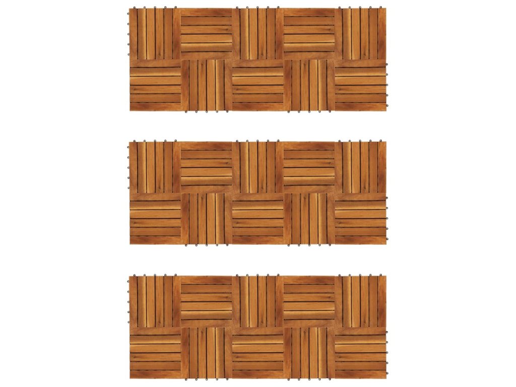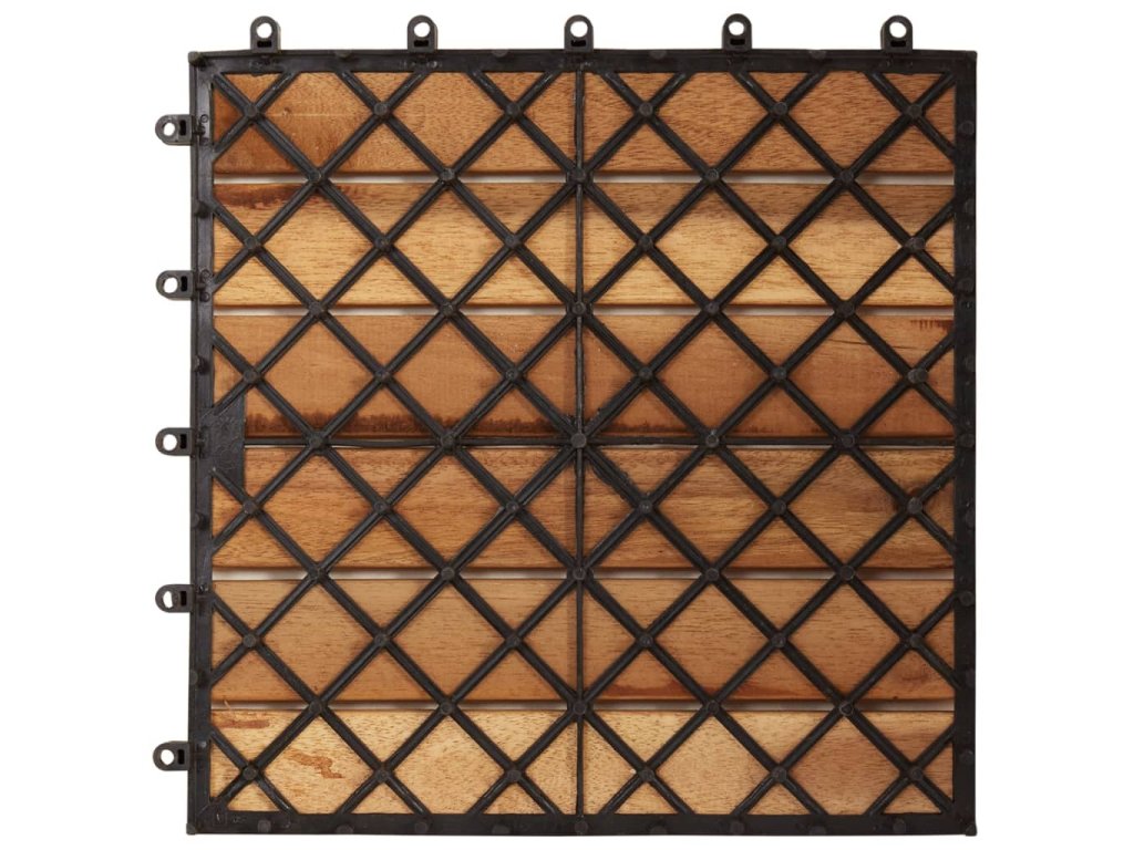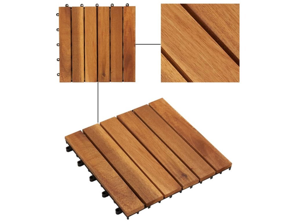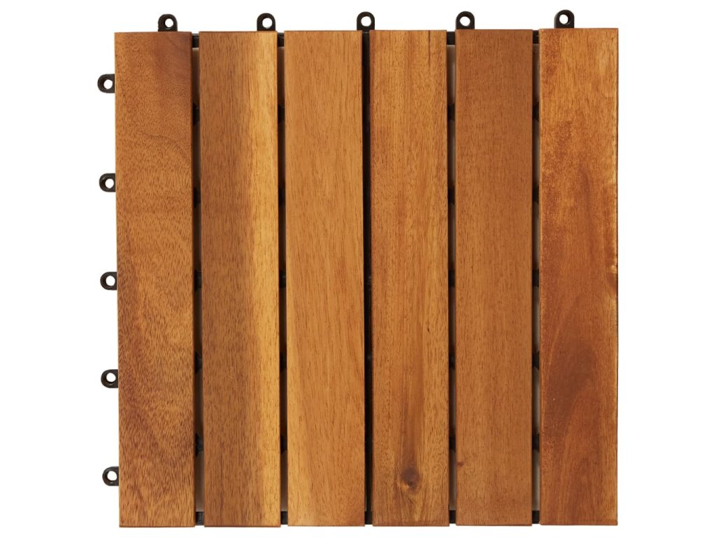 Podlahové dlaždice jsou vyrobené z kvalitního akáciového dřeva, což je tropické tvrdé dřevo, které je samozřejmně odolné proti vlivům počasí a má dlouhou životnost. Díky zacvakávacím spojením do sebe dlaždice jednoduše a těsně zapadnou a vytvoří tak stabilní povrch.