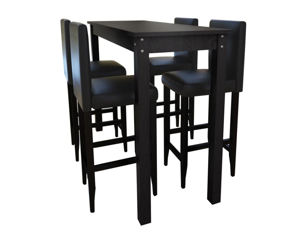 Tento jídelní set, který se skládá z obdélníkového barového stolu a 4 odpovídajících polstrovaných barových židlí, je ideální pro malé byty nebo tam, kde je trochu méně místa. Jeho moderní design z něj dělá elegantní doplněk do každé kuchyně nebo jídelny. Robustní stolní deska z MDF a odolná PU kůže sedadel se snadno čistí otřením.