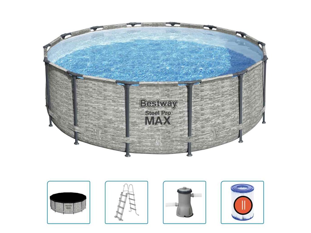 Elektrické filtrační čerpadlo je součástí cirkulačního systému a udržuje bazén čistý. Antimikrobiální filtrační kartuš napomáhá prevenci vzniku a množení řas, plísní a dalších mikroorganismů ve vašem bazénu. Dávkovač ChemConnect udržuje vodu v bazénu čistou a zdravou. Dávkovače zajišťuje stabilní hladinu chlóru potřebnou pro správnou chemickou rovnováhu. Bazénové schůdky vám umožní bezpečně do bazénu sestoupit nebo z něj vylézt. Na jedné straně se navíc dají zvednout, takže na ně malé děti nebudou moci vylézt bez dozoru. Pokud ho právě nepoužíváte, dá se bazén snadno rozložit a uskladnit nebo přepravovat.