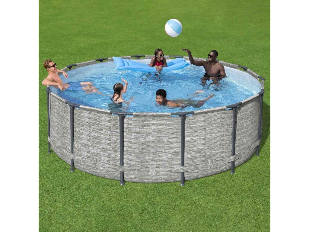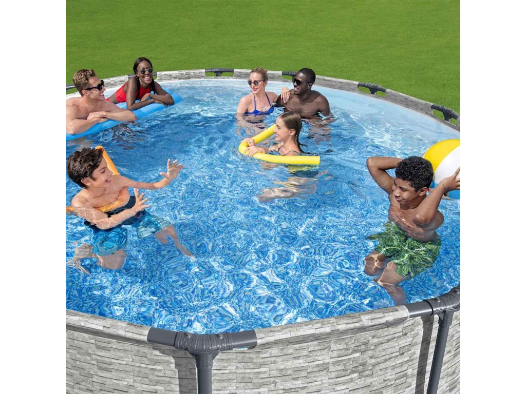 Užijte si spoustu zábavy s rodinou a přáteli s tímto bazénem Power Steel Bestway. Kulatý tvar poskytuje více prostoru na plavání a hraní.