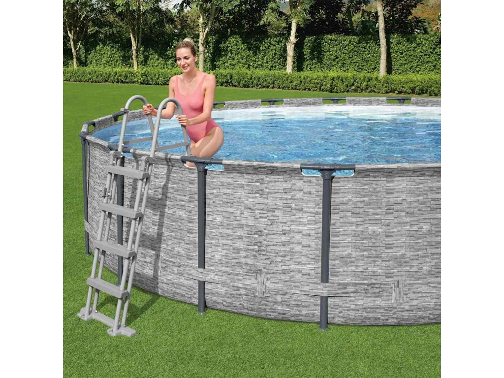 Stylový bazén má zesílené stěny, které jsou vyrobeny z materiálu Tritech, zesíleného 3vrstvého materiálu z laminovaného odolného PVC a polyesterové síťoviny. Nadzemní bazén má prvotřídní kovový rám a zesílené boční stěny, je tudíž vysoce stabilní a odolný. Rám bazénu je navíc vybavený systémem Seal & Lock pro pevné a bezpečné propojení trubek. Příprava bazénu k použití je rychlá a snadná. Jednoduše umístěte bazén na rovnou plochu, sestavte celý rám a potom naplňte bazén vodou. Bazén můžete kdykoliv jednoduše a rychle vyprázdnit vypouštěcím ventilem.