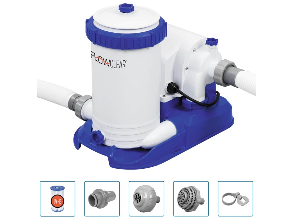 Toto filtrační čerpadlo Flowclear Bestway zaručuje rychlou a účinnou cirkulaci vody a zajistí vám vždy čistou vodu v bazénu. Má vynikající filtrační vlastnosti s kapacitou 9 463 l/h.