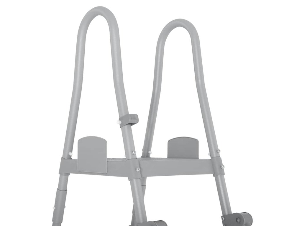 Rám bazénových schůdků je vyrobený z pevné oceli a má maximální nosnost 150 kg. Čtyři protiskluzové stupínky na každé straně jsou vyrobené z vysoce odolné umělé hmoty. Schůdky na jedné straně žebříku lze upravit jako zábranu, která malý dětem znemožní dostat se po schůdkách do bazénu.