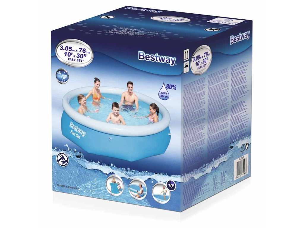 Vychutnejte si zábavu ve svém dvorku s rodinou a přáteli v tomto nafukovacím bazénu Bestway Fast Set 57266.