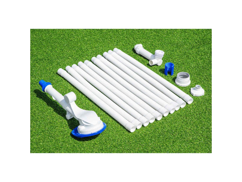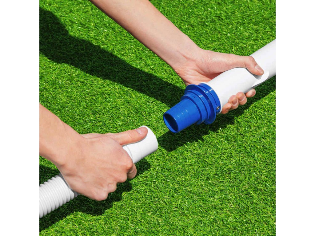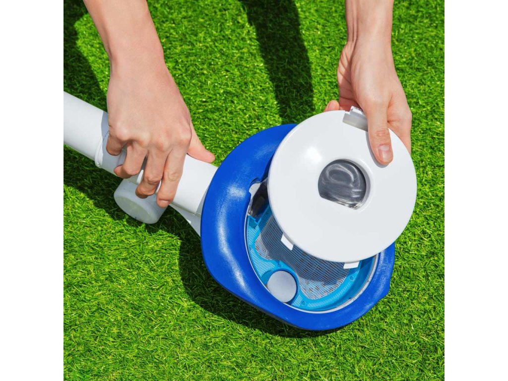 Vysavač AquaSweeper se velmi snadno používá, jednoduše ho připojte k filtračnímu čerpadlu vašeho bazénu a systém se spustí. Regulátor tlaku vám pomůže kontrolovat průtok přiváděné vody, takže ho můžete používat, i když máte vysoce výkonné filtrační čerpadlo. Sání probíhá rychle a tiše. 7,5 metrů dlouhá flexibilní hadice vám umožní dosáhnout i do nejvzdálenějších bodů nádrže. Součástí balení jsou konektory, díky kterým je vysavač kompatibilní se všemi bazény v kolekci Bestway, včetně bazénů s měkkou strukturou.