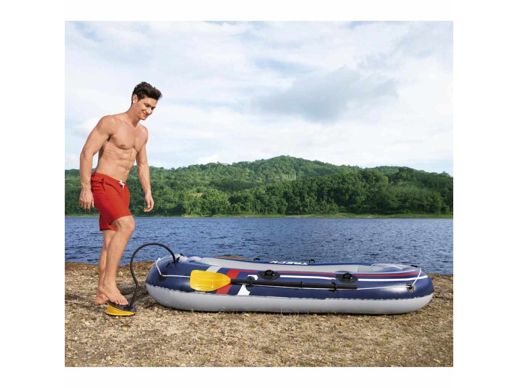 Nafukovací člun je vyrobený z pevného a odolného PVC, je robustní a má dlouhou životnost. Člun je vyrobený s ohledem na vaše pohodlí a je vybavený robustními havlinkami pro veslování a držáky pro upevnění vesel, když je právě nepoužíváte. Nafukovací podlážka a podušky na sedácích vám zaručí pohodlí během vaší plavby. Lano s integrovanými průchodkami umožňuje snadné připoutání vašeho člunu k doku nebo lodi. Velmi odolná rukojeť a tažný kruh umožňují jednoduchou a snadnou přepravu.