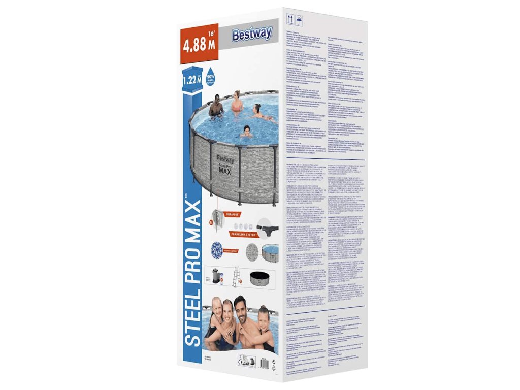 Stylový bazén má zesílené stěny, které jsou vyrobeny z DuraPlus™, materiálu vyztuženého polyesterovým síťovaným jádrem a dvěma vrstvami vysoce kvalitního PVC pro vynikající pevnost a odolnost. Stabilitu bazénu zajišťuje také rám z kvalitní oceli, který je navíc vybavený systémem FrameLink pro pevné a bezpečné propojení trubek. K tomu se dá také snadno a rychle postavit. Stačí ho položit na rovný povrch, sestavit celou konstrukci a poté bazén naplnit vodou. Bazén můžete kdykoliv jednoduše a rychle vypustit vypouštěcím ventilem.