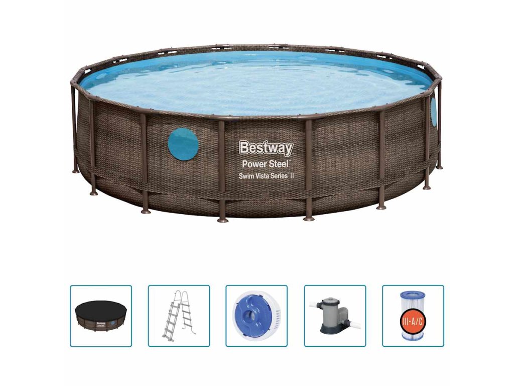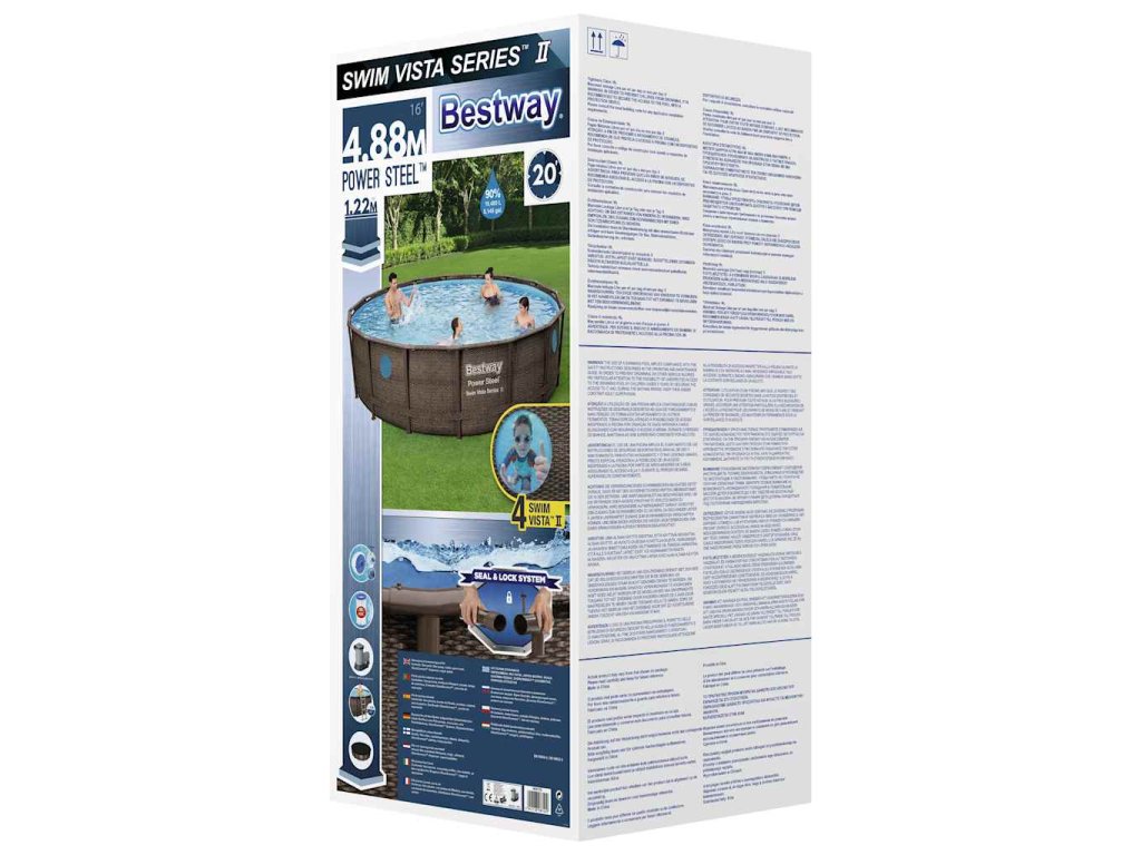 S bazénem Bestway Power Steel, jehož kulatý tvar poskytuje větší plochu pro plavání a hry, si užijete spoustu zábavy s rodinou či přáteli. Tento nadzemní bazén v sobě snoubí odolnost a styl a jeho potisk s imitací ratanu dodá vaší zahradě či dvorku nádech luxusu.