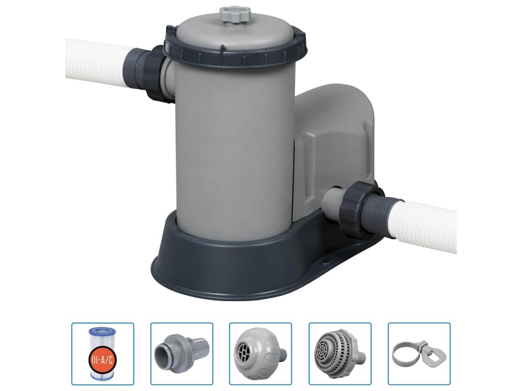 Filtrační čerpadlo je součástí cirkulačního systému a udržuje vodu čistou. Filtrační kazeta napomáhá prevenci vzniku a množení řas, plísní a dalších mikroorganismů ve vašem bazénu. Dávkovač ChemConnect udržuje a zajišťuje čistou zdravou bazénovou vodu. Bazénové schůdky vám umožní bezpečně do bazénu vstupovat i z něj vylézat. Na jedné straně se navíc dají zvednout, takže na ně malé děti nebudou moci vylézt bez dozoru. Pokud ho právě nepoužíváte, dá se bazén snadno rozložit a uskladnit nebo přepravovat.