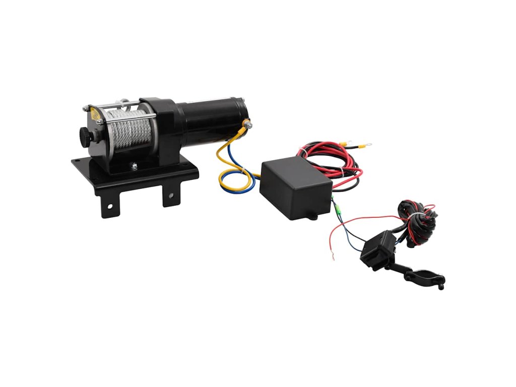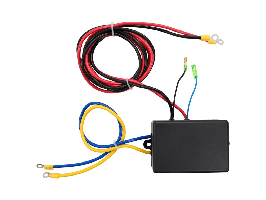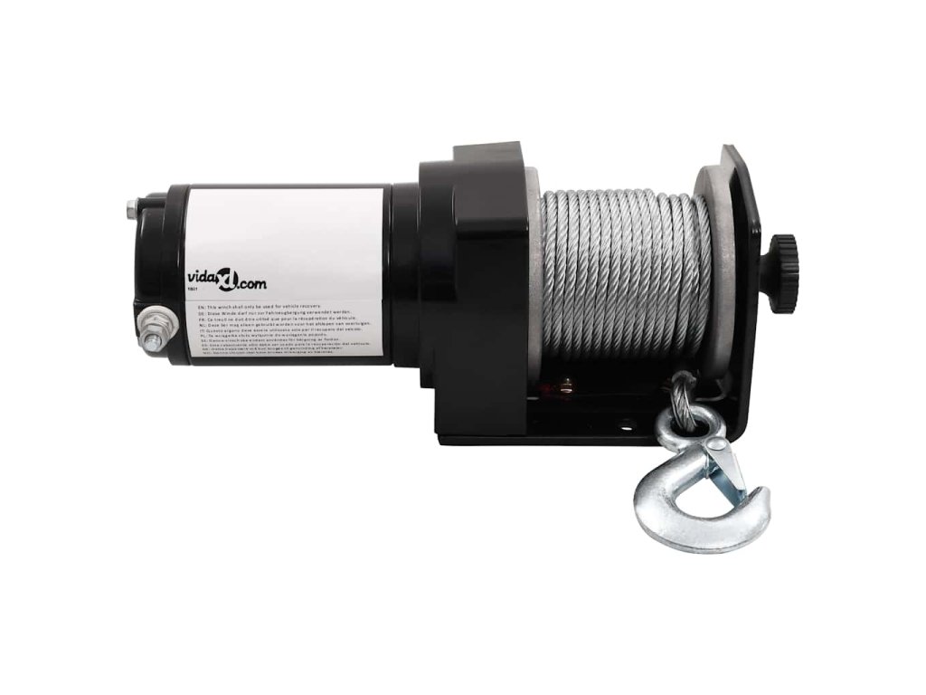 Dodávka obsahuje: 1 x naviják, 1 x montážní plotna, 1 x naváděcí rolna, 1 x dálkové ovládání s kabelem, 1 x hák s kabelem, elektrický kabel a montážní příslušenství jako šrouby a matice.