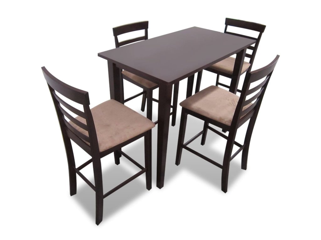 Balení obsahuje 1 hnědý barový stůl a 4 barové židle.