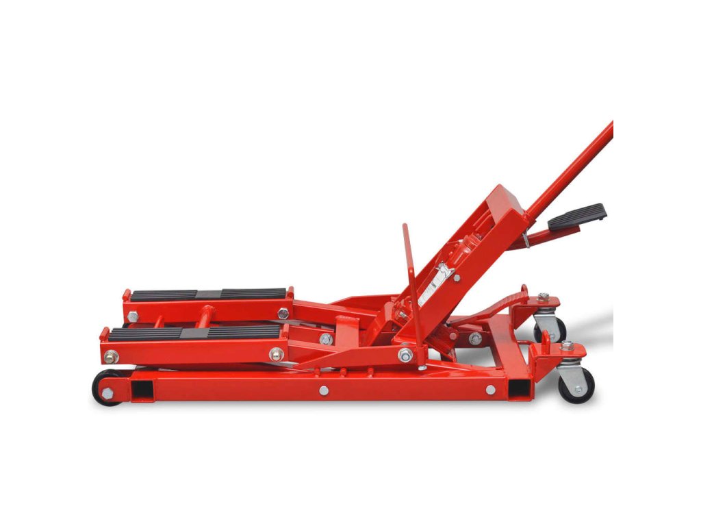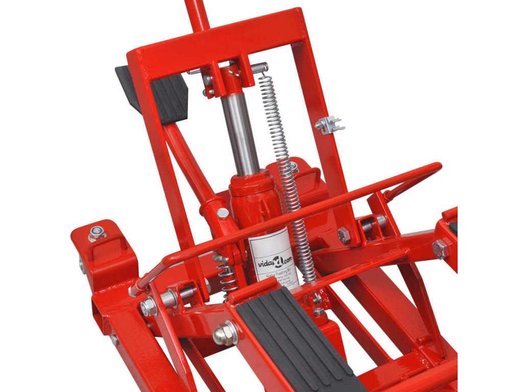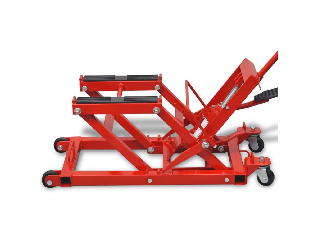 Tento hydraulický zvedák na motorku má maximální nosnost 680 kg a zvedá se do výšky mezi 118 mm a 368 mm. Je zkonstruovaný z vysoce kvalitní pevné a odolné lité oceli. Pogumované nosné plošinky chrání rám motorky/čtyřkolky.