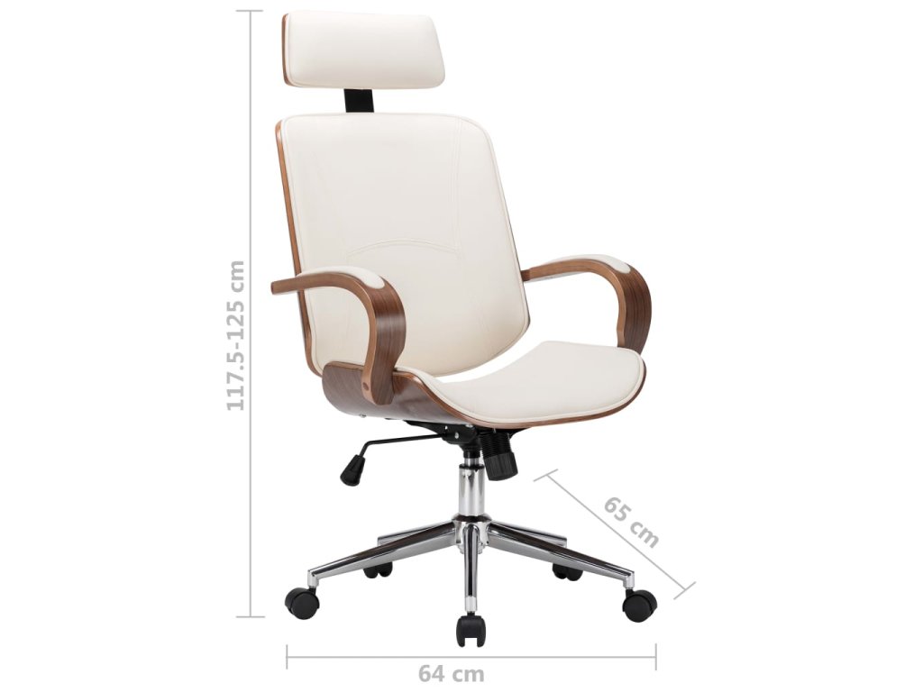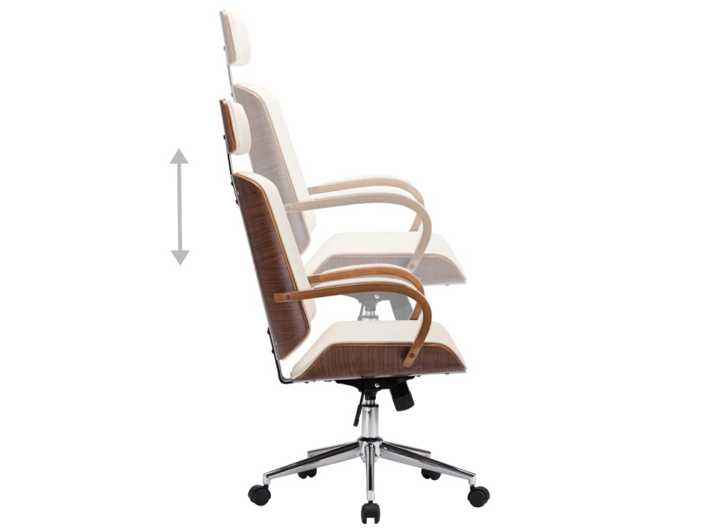 Sedadlo a opěradlo jsou čalouněné měkkou, silně polstrovanou umělou kůží, která zaručuje maximální pohodlí. Rám z ohýbaného dřeva dodává židli jedinečnou krásu a styl. Ergonomicky tvarované opěradlo dává potřebnou oporu zádům a pomáhá tak minimalizovat tlak na páteř. Opěrka hlavy doplní již tak pohodlné sezení. Výška křesla je nastavitelná prostřednictvím mechanismu plynového pístu. Židle je navíc vybavená 5 kolečky pro snadné přesouvání dle potřeby.