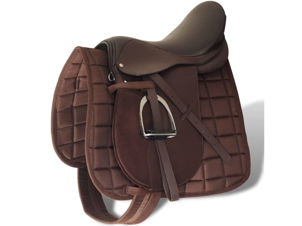 Tento set z pravé kůže s příslušenstvím obsahuje sedlo, pod-sedlovou dečku, třmeny, třmenové řemeny a podbřišník. Sedlo je navrženo tak, aby jste seděli ve správné poloze, což vám umožní bezpečnou jízdu. Toto nádherné sedlo je vyrobeno z vysoce kvalitní pravé kůže (100%). Je nejen estetické, ale i praktické. Sedlo je zesíleno ve všech tlakových bodech pro větší trvanlivost. Sedlová deka je z polyesteru. Je dobře polstrovaná pro pohodlí koně a může se odejmout pro snadné čištění. Kovové třmeny jsou dostatečně pevné, takže vám budou sloužit po mnoho let. Oba třmenové pásy a podbřišník jsou pevné pro bezpečnost při jízdě. Toto sedlo je lehké a velmi pohodlné při dlouhých vyjížďkách. S tímto sedlem bude osedlání hračkou.
