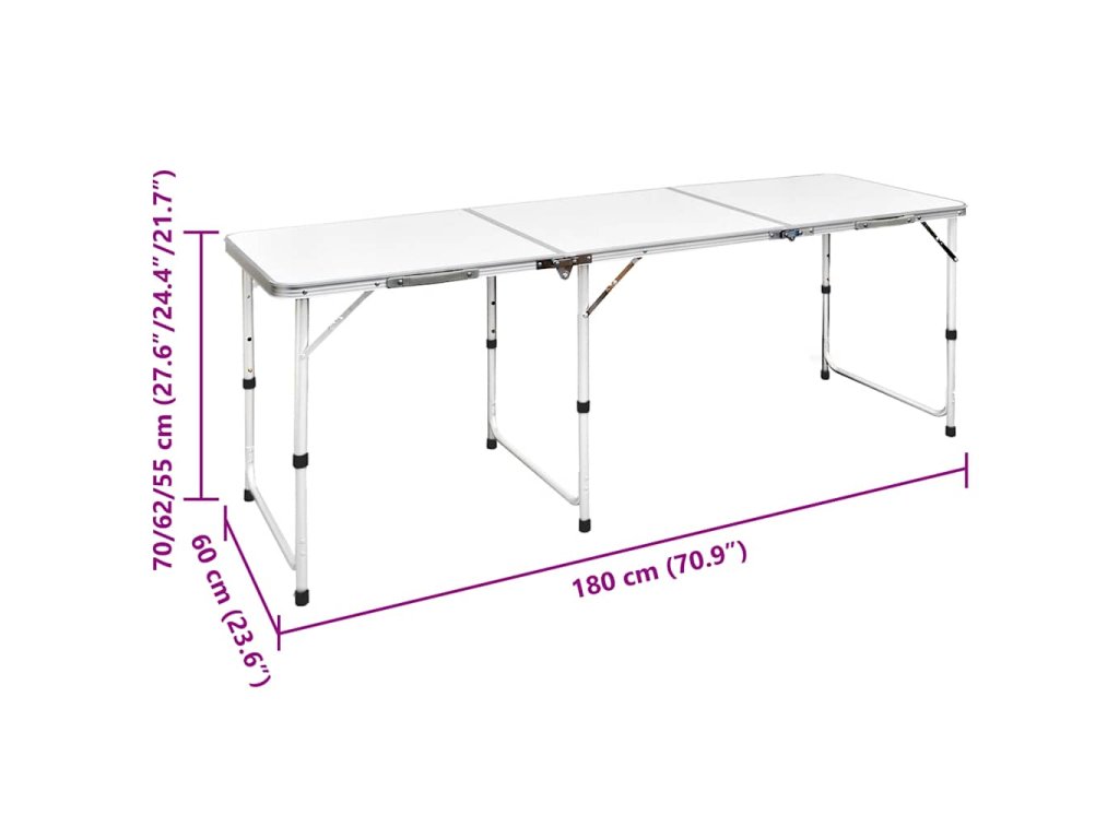 Tento skládací kempingový stůl s transportní rukojetí vám přijde vhod v kuchyni, na terase, na zahradě a na piknicích a při kempování. Výška stolu se dá nastavit na 55 cm, 62 cm a 70 cm.