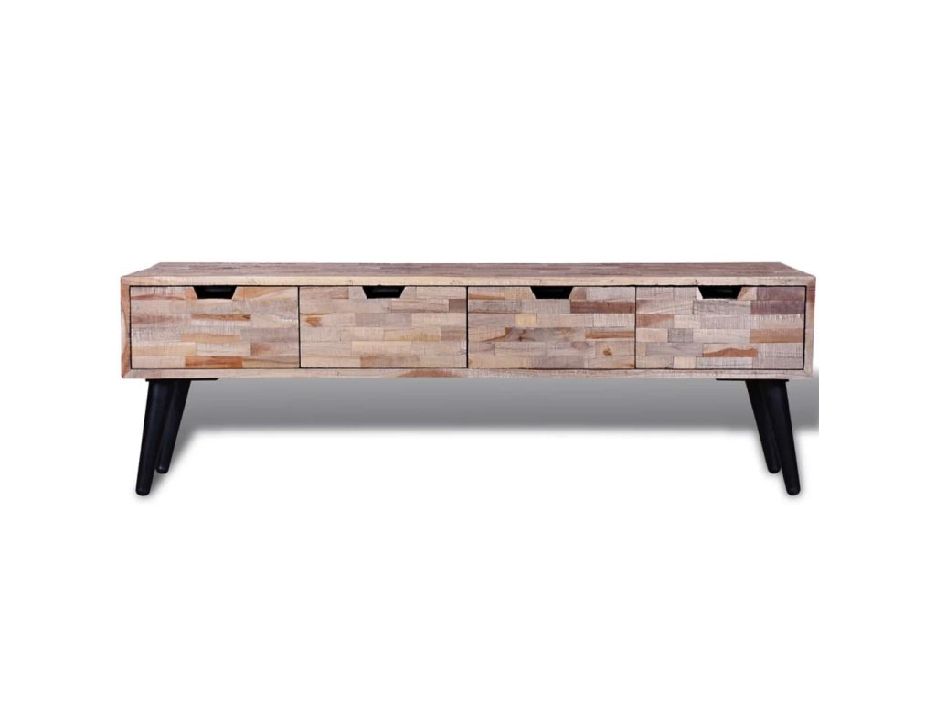 Tento teakový TV stolek je nejen elegantní, ale také velmi praktický s jeho čtyřmi prostornými úložnými zásuvkami. Bude skvělým doplňkem do vašeho obývacího pokoje nebo dokonce ložnice.