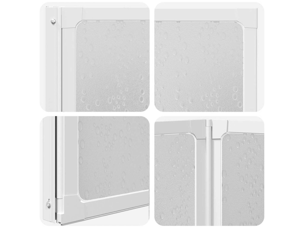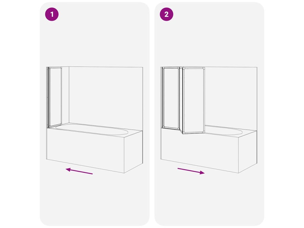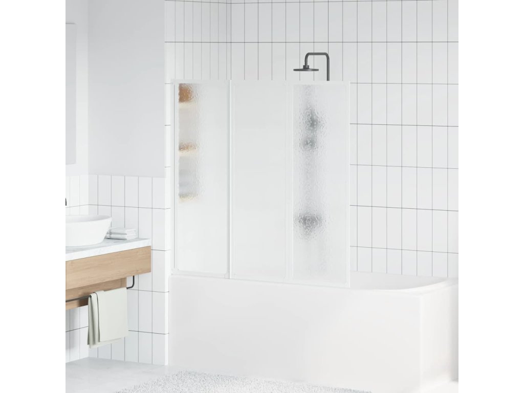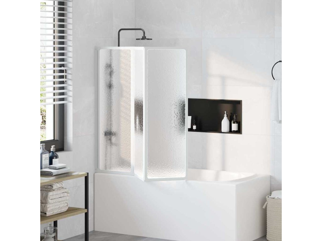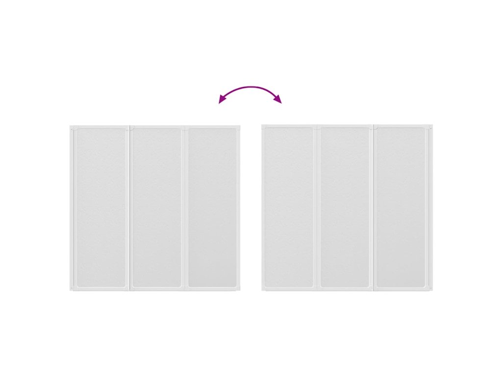 Skládací vanová zástěna je velmi praktická a pohodlná , můžete otevřít tři panely když je potřebujete a složit jejich pro úsporu místa , když se nepoužívají , ideální pro všechny rodinné koupelny . Jeho stabilní hliníkový rám a PP deska zajišťují dlouhou životnost . Pogumované spodní těsnění jsou vybaveny tak , aby se zabránilo úniku vody na podlahu . Kromě toho , vanová zástěna je univerzální . Může být namontována buď na levé nebo na pravé straně .