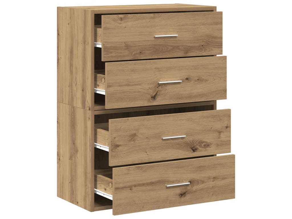 - Dostatek úložného prostoru: Díky úložným zásuvkám skříně poskytují dostatek úložného prostoru pro vaše věci. Každá přihrádka je dostatečně prostorná a horní desku lze použít k vystavení, což zajistí, že vaše každodenní potřeby budou přehledně uspořádané a snadno dostupné.