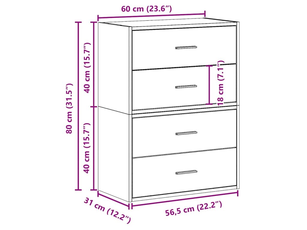 - Rozměry zásuvky (každého kusu): 57 x 31 x 18 cm (Š x H x V)