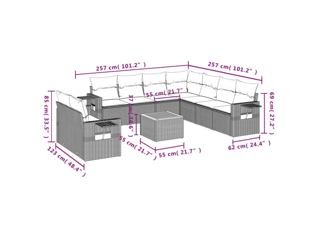 Tato zahradní sedací souprava je dokonalým doplňkem vaší zahrady, terasy nebo dvorku a poskytne vám pohodlné a příjemné místo, kde si můžete povídat s rodinou a přáteli nebo jen tak odpočívat a užívat si pobyt venku.