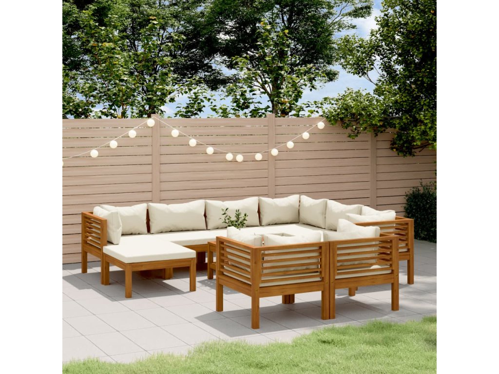 Rám z masivního akáciového dřeva je pevný, odolný a má dlouhou životnost. Dřevo je napuštěné olejem, sedací souprava je proto vhodná i pro venkovní použití. Odnímatelné podušky jsou silně polstrované, takže se vám na nich bude nesmírně dobře sedět. Součástí balení je také konferenční stolek v unikátním laťkovém provedení. Nevšední modulární design vám umožní všechny díly přestavovat a upravovat dle momentálních potřeb.