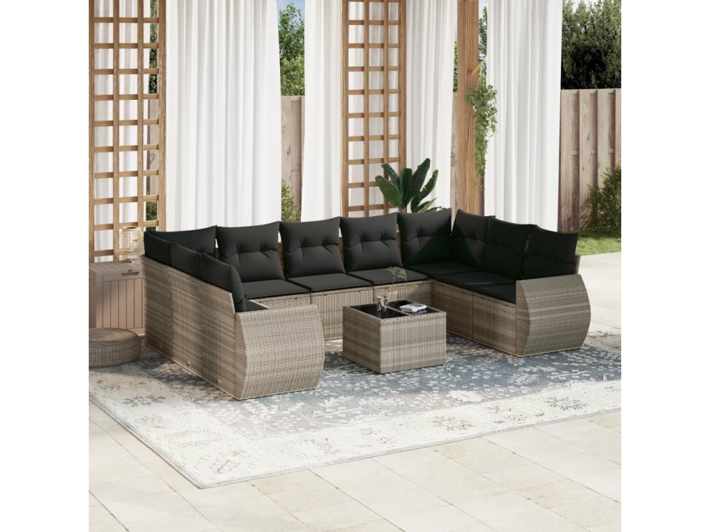 Tato zahradní sedací souprava je dokonalým doplňkem vaší zahrady, terasy nebo dvorku a poskytne vám pohodlné a příjemné místo, kde si můžete povídat s rodinou a přáteli nebo jen tak odpočívat a užívat si pobyt venku.