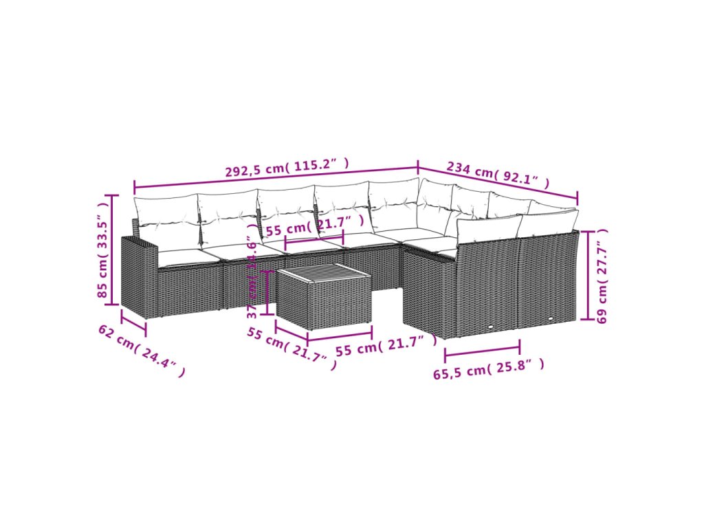 Tato zahradní sedací souprava je dokonalým doplňkem vaší zahrady, terasy nebo dvorku a poskytne vám pohodlné a příjemné místo, kde si můžete povídat s rodinou a přáteli nebo jen tak odpočívat a užívat si pobyt venku.