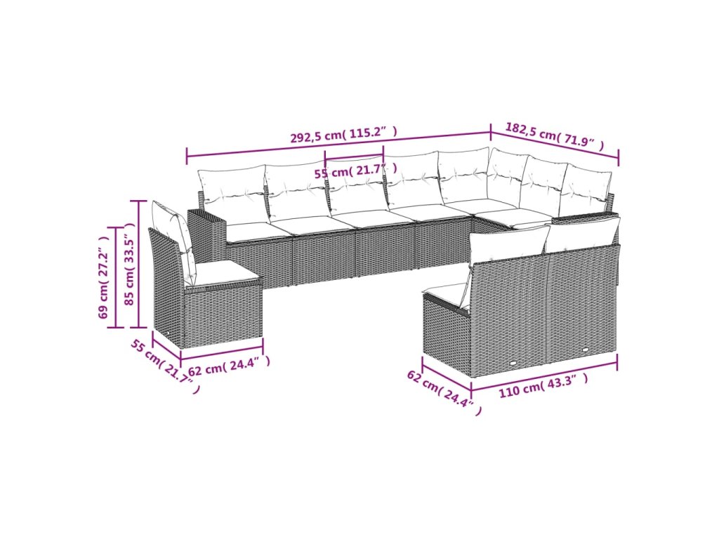 Tato zahradní sedací souprava je dokonalým doplňkem vaší zahrady, terasy nebo dvorku a poskytne vám pohodlné a příjemné místo, kde si můžete povídat s rodinou a přáteli nebo jen tak odpočívat a užívat si pobyt venku.