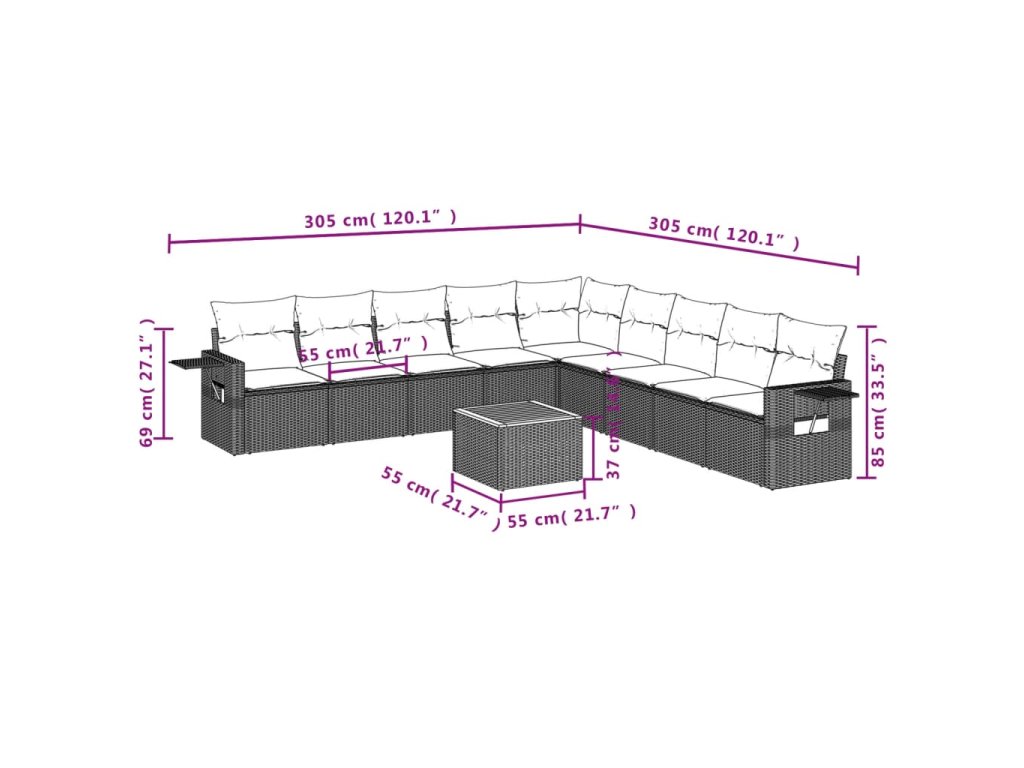 Tato zahradní sedací souprava je dokonalým doplňkem vaší zahrady, terasy nebo dvorku a poskytne vám pohodlné a příjemné místo, kde si můžete povídat s rodinou a přáteli nebo jen tak odpočívat a užívat si pobyt venku.