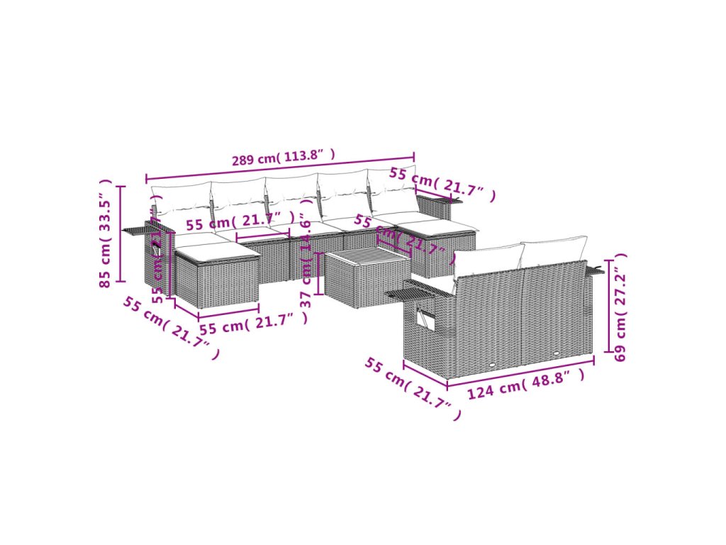 Tato zahradní sedací souprava je dokonalým doplňkem vaší zahrady, terasy nebo dvorku a poskytne vám pohodlné a příjemné místo, kde si můžete povídat s rodinou a přáteli nebo jen tak odpočívat a užívat si pobyt venku.