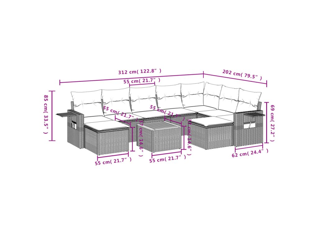 Tato zahradní sedací souprava je dokonalým doplňkem vaší zahrady, terasy nebo dvorku a poskytne vám pohodlné a příjemné místo, kde si můžete povídat s rodinou a přáteli nebo jen tak odpočívat a užívat si pobyt venku.