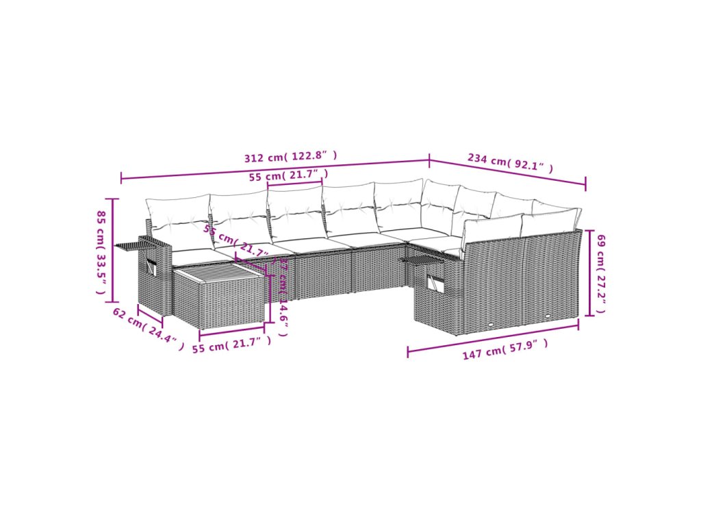 Tato zahradní sedací souprava je dokonalým doplňkem vaší zahrady, terasy nebo dvorku a poskytne vám pohodlné a příjemné místo, kde si můžete povídat s rodinou a přáteli nebo jen tak odpočívat a užívat si pobyt venku.