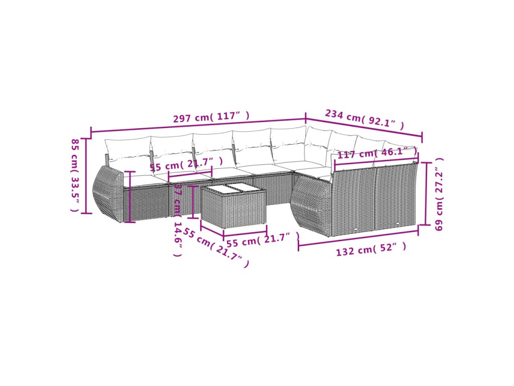 Tato zahradní sedací souprava je dokonalým doplňkem vaší zahrady, terasy nebo dvorku a poskytne vám pohodlné a příjemné místo, kde si můžete povídat s rodinou a přáteli nebo jen tak odpočívat a užívat si pobyt venku.