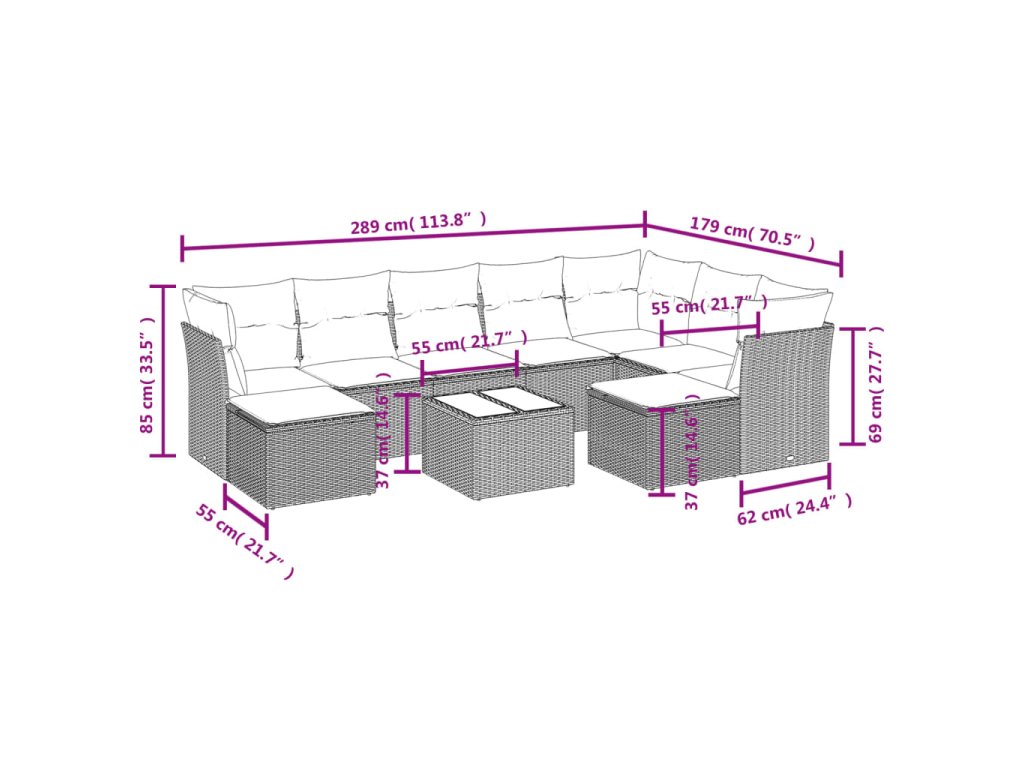 Tato zahradní sedací souprava je dokonalým doplňkem vaší zahrady, terasy nebo dvorku a poskytne vám pohodlné a příjemné místo, kde si můžete povídat s rodinou a přáteli nebo jen tak odpočívat a užívat si pobyt venku.