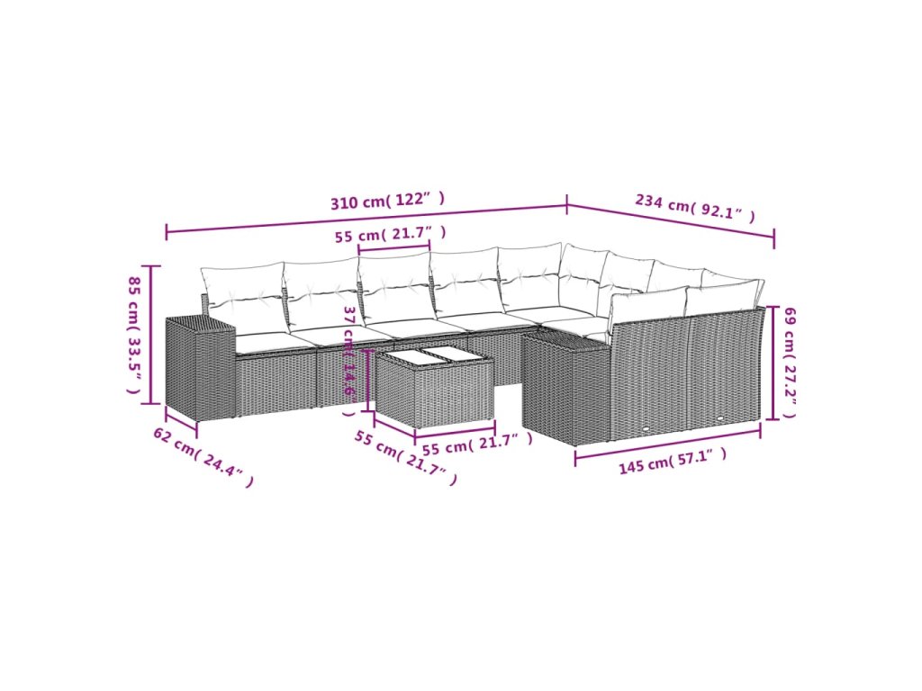Tato zahradní sedací souprava je dokonalým doplňkem vaší zahrady, terasy nebo dvorku a poskytne vám pohodlné a příjemné místo, kde si můžete povídat s rodinou a přáteli nebo jen tak odpočívat a užívat si pobyt venku.