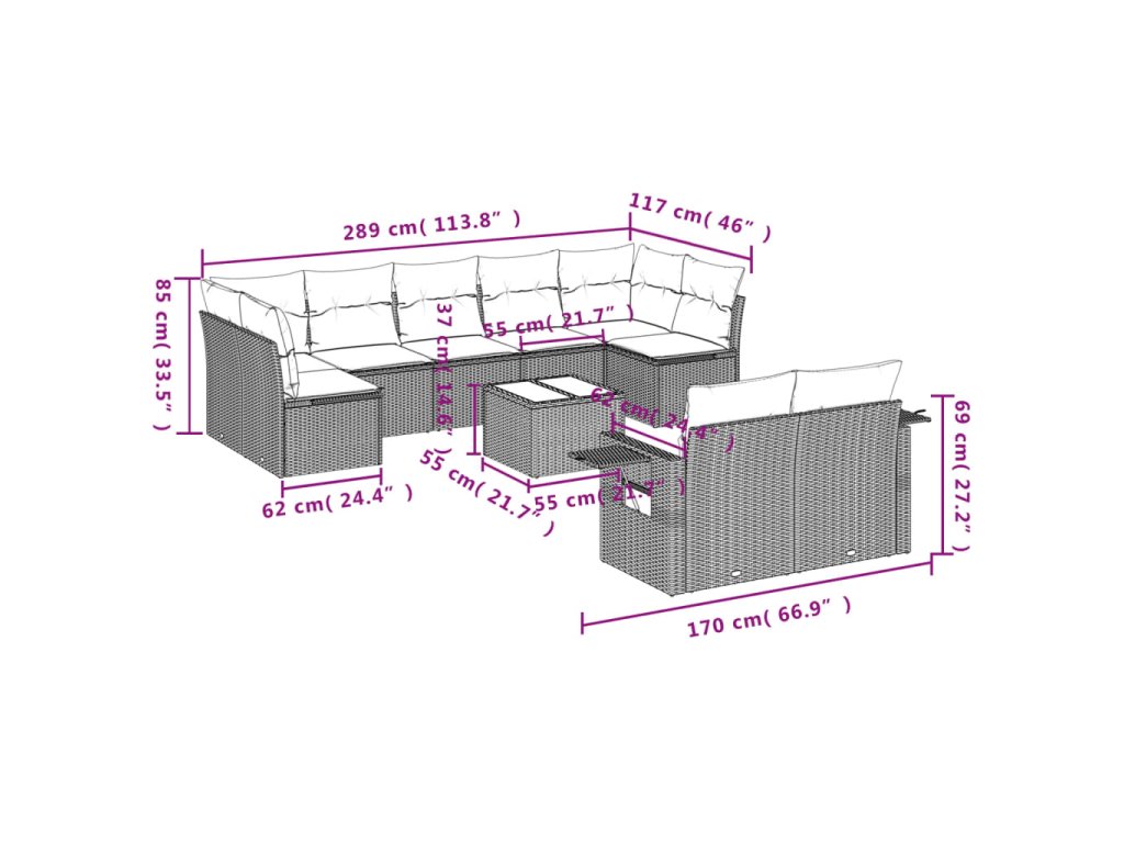 Tato zahradní sedací souprava je dokonalým doplňkem vaší zahrady, terasy nebo dvorku a poskytne vám pohodlné a příjemné místo, kde si můžete povídat s rodinou a přáteli nebo jen tak odpočívat a užívat si pobyt venku.