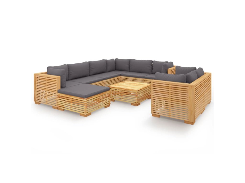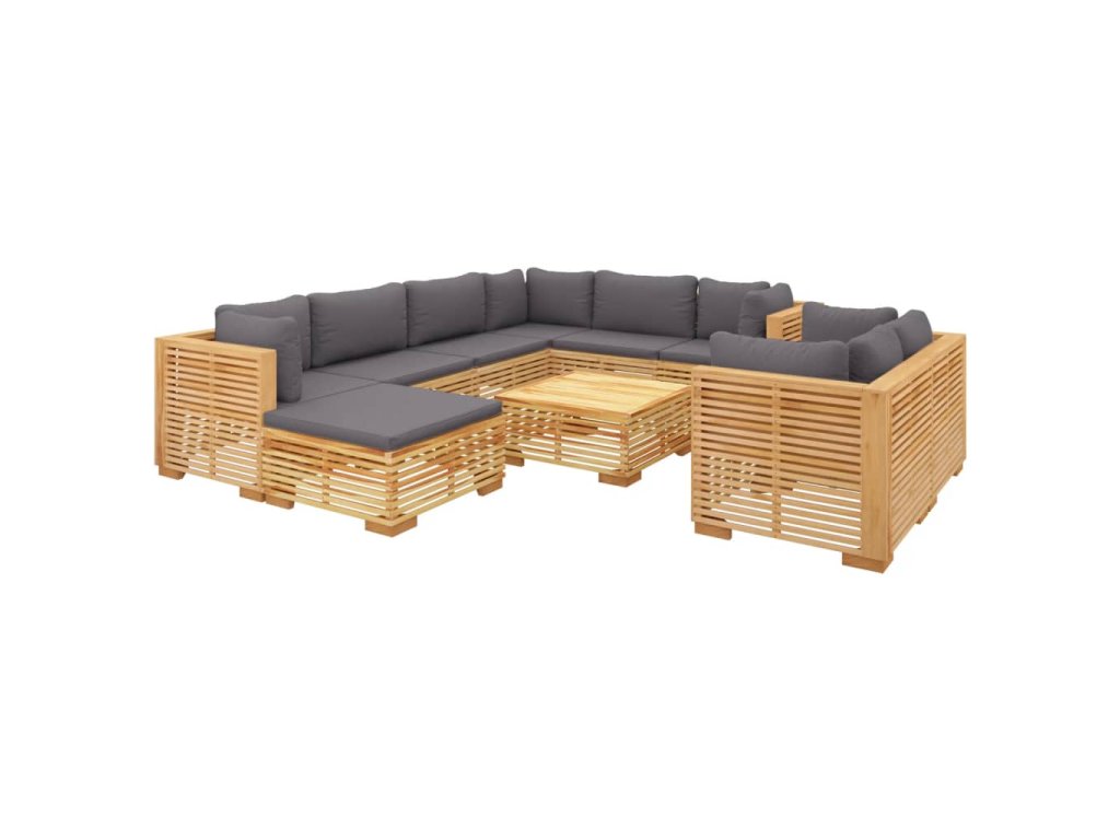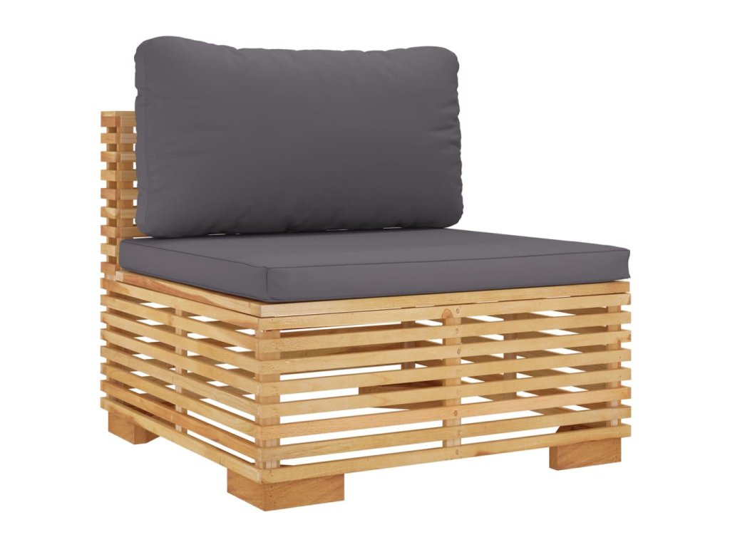 - Materiál: masivní teakové tvrdé dřevo s povrchovou úpravou na vodní bázi, textil (100% polyester)