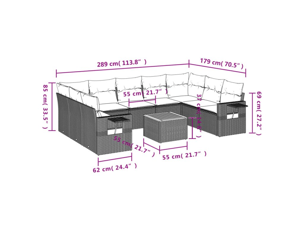 Tato zahradní sedací souprava je dokonalým doplňkem vaší zahrady, terasy nebo dvorku a poskytne vám pohodlné a příjemné místo, kde si můžete povídat s rodinou a přáteli nebo jen tak odpočívat a užívat si pobyt venku.