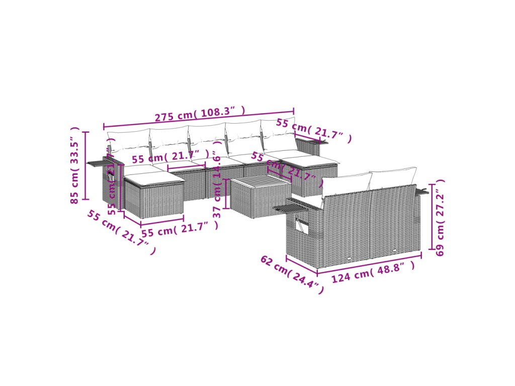 Tato zahradní sedací souprava je dokonalým doplňkem vaší zahrady, terasy nebo dvorku a poskytne vám pohodlné a příjemné místo, kde si můžete povídat s rodinou a přáteli nebo jen tak odpočívat a užívat si pobyt venku.