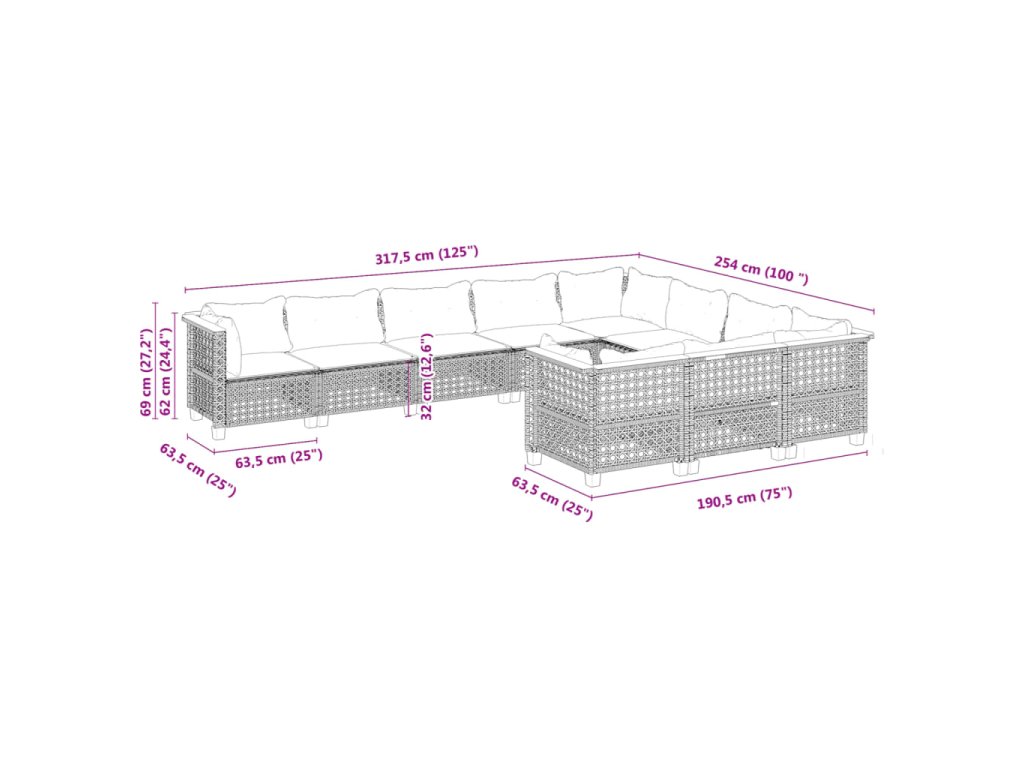 Tato zahradní sedací souprava je dokonalým doplňkem vaší zahrady, terasy nebo dvorku a poskytne vám pohodlné a příjemné místo, kde si můžete povídat s rodinou a přáteli nebo jen tak odpočívat a užívat si pobyt venku.