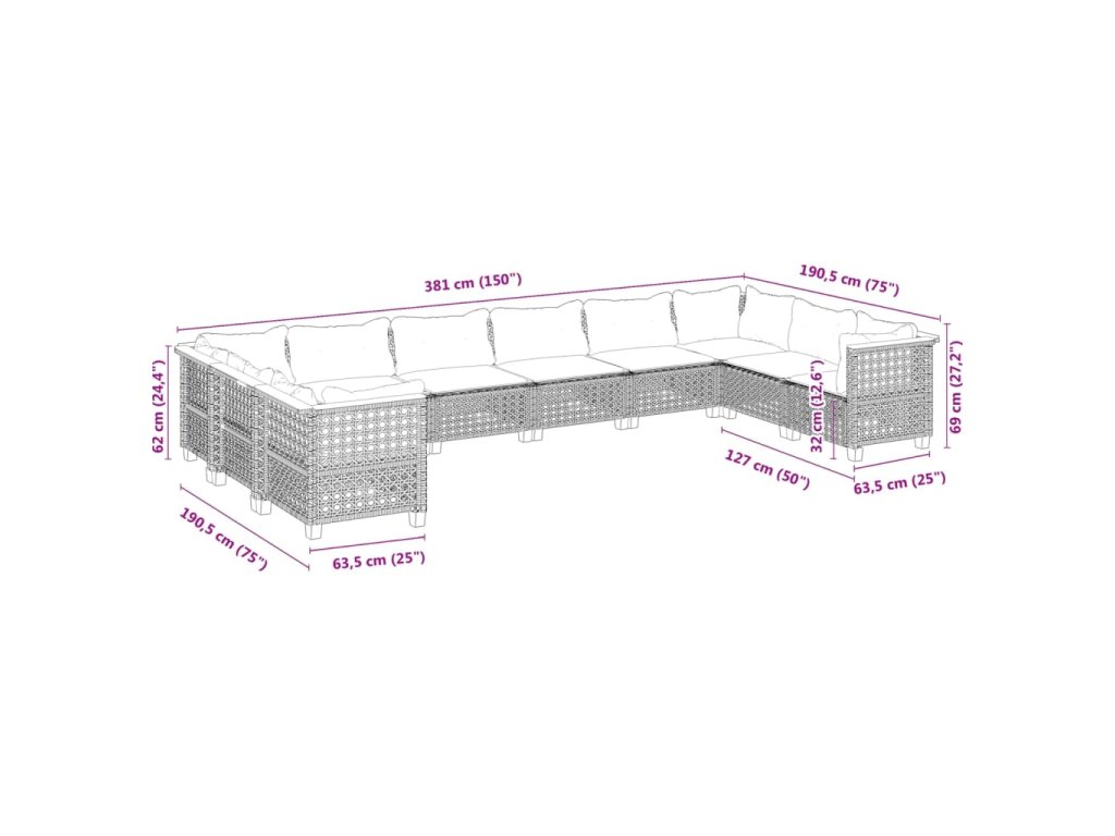 Tato zahradní sedací souprava je dokonalým doplňkem vaší zahrady, terasy nebo dvorku a poskytne vám pohodlné a příjemné místo, kde si můžete povídat s rodinou a přáteli nebo jen tak odpočívat a užívat si pobyt venku.