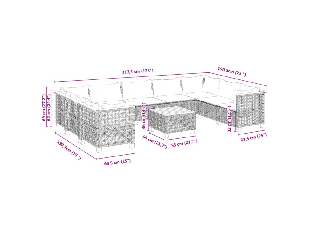 Tato zahradní sedací souprava je dokonalým doplňkem vaší zahrady, terasy nebo dvorku a poskytne vám pohodlné a příjemné místo, kde si můžete povídat s rodinou a přáteli nebo jen tak odpočívat a užívat si pobyt venku.