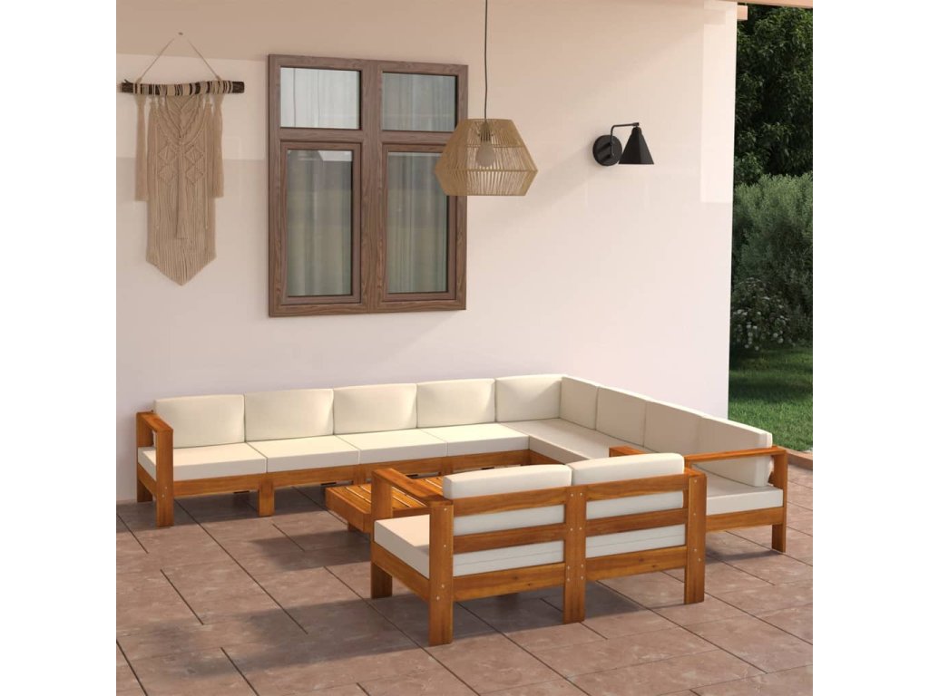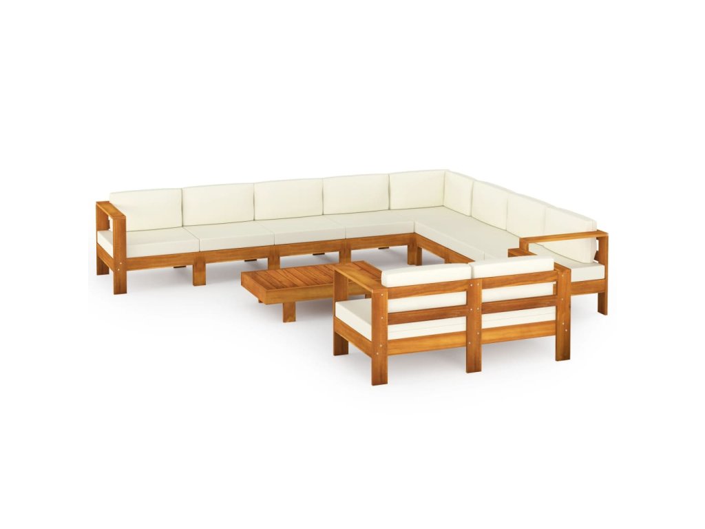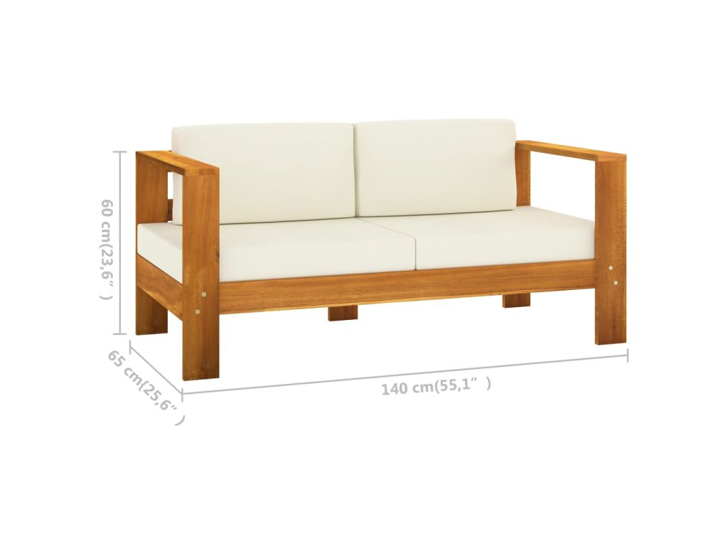 Zahradní sedací souprava je pečlivě vyrobená z masivního akáciového dřeva. Je robustní, má dlouhou životnost a hodí se pro venkovní použití. Silně polstrované podušky na sedák a opěradlo vám poskytnou extra pohodlí pro vaše chvíle odpočinku. Povrch napuštěný olejem se snadno čistí vlhkým hadříkem a robustní deska stolu je ideální pro odkládání nápojů a jídla v dosahu ruky.