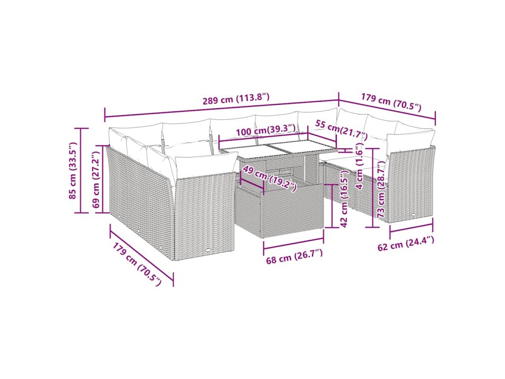 Tato zahradní sedací souprava je dokonalým doplňkem vaší zahrady, terasy nebo dvorku a poskytne vám pohodlné a příjemné místo, kde si můžete povídat s rodinou a přáteli nebo jen tak odpočívat a užívat si pobyt venku.