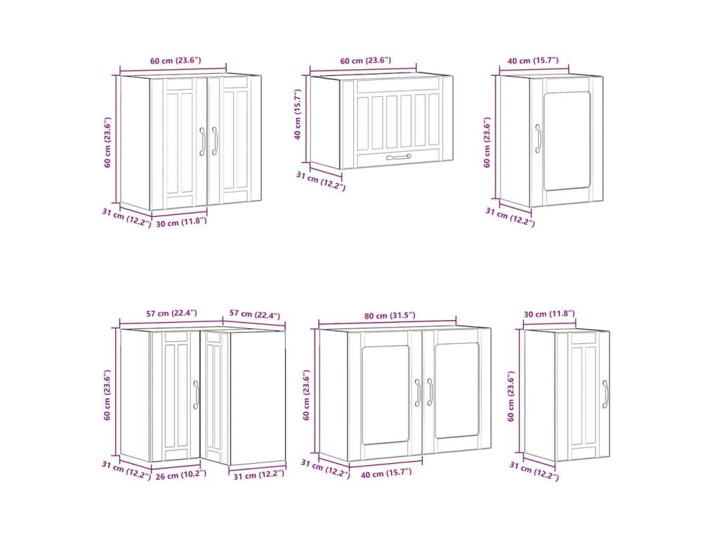- 1 x kuchyňská nástěnná skříňka: 80 x 31 x 60 cm (Š x H x V)