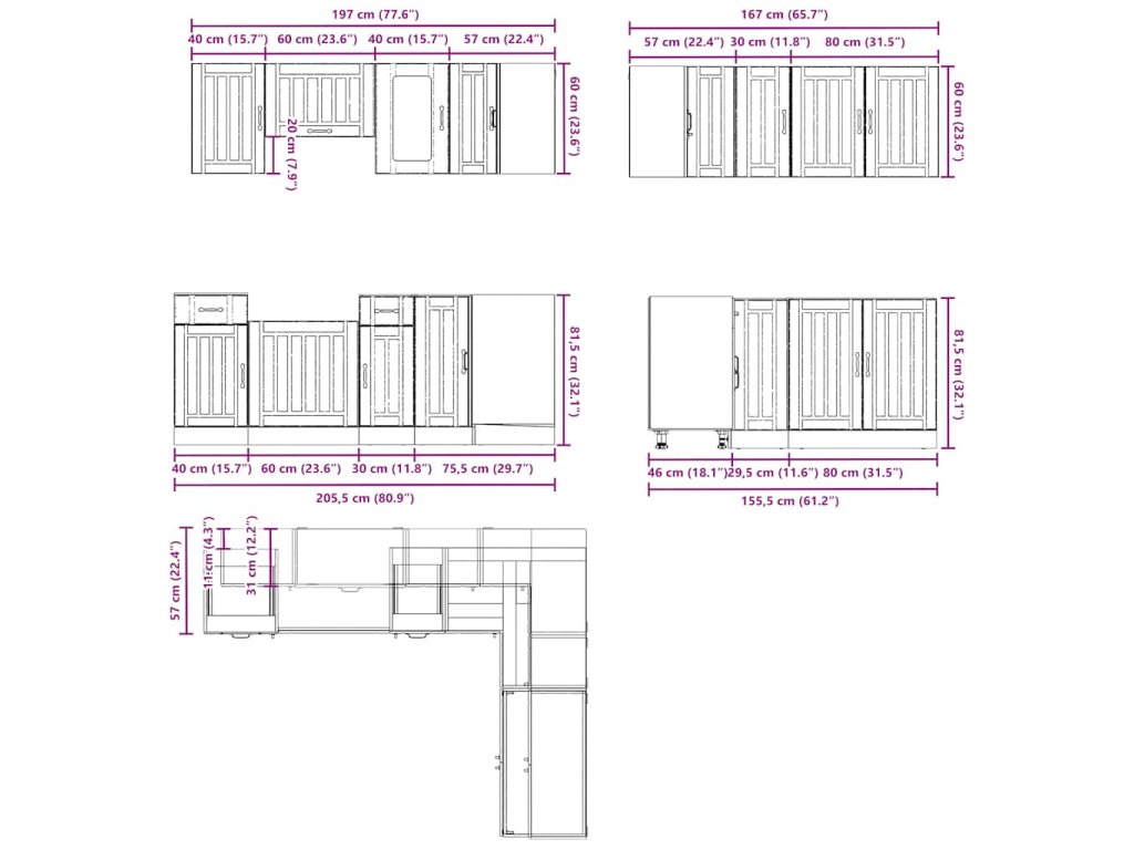 - Dostatek úložného prostoru: Sada kuchyňských skříněk má mnoho přihrádek a nabízí dostatek prostoru pro uložení misek, talířů, hrnců a dalších kuchyňských spotřebičů.
