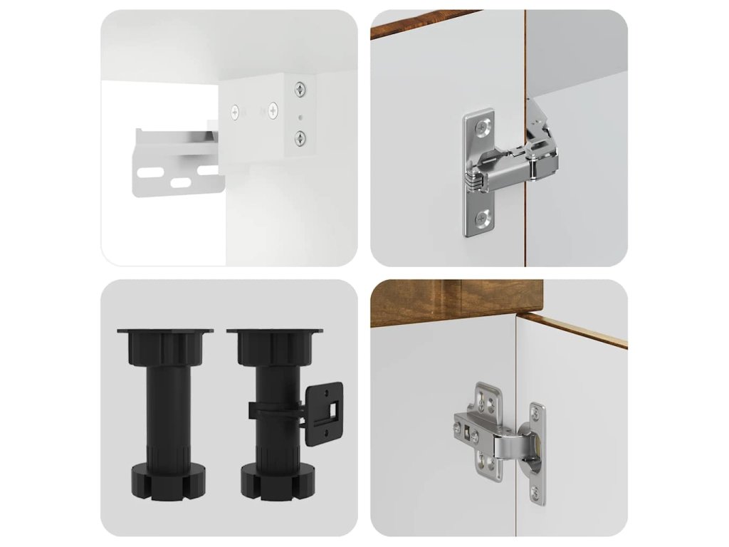 - Nastavitelné nožičky: Spodní skříňky jsou vybaveny nastavitelnými nožičkami, které lze výškově nastavit tak, aby vyhovovaly uspořádání vaší kuchyně.