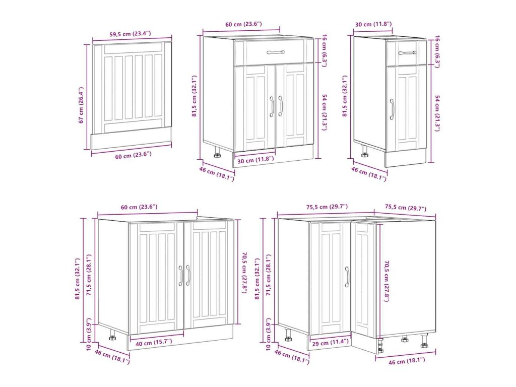 - 1 x kuchyňská spodní skříňka: 60 x 46 x 81,5 cm (Š x H x V)
