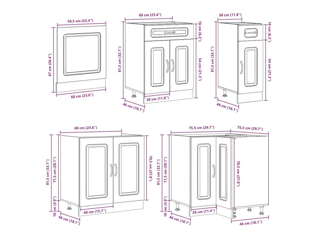 - 1 x kuchyňská spodní skříňka: 80 x 46 x 81,5 cm (Š x H x V)