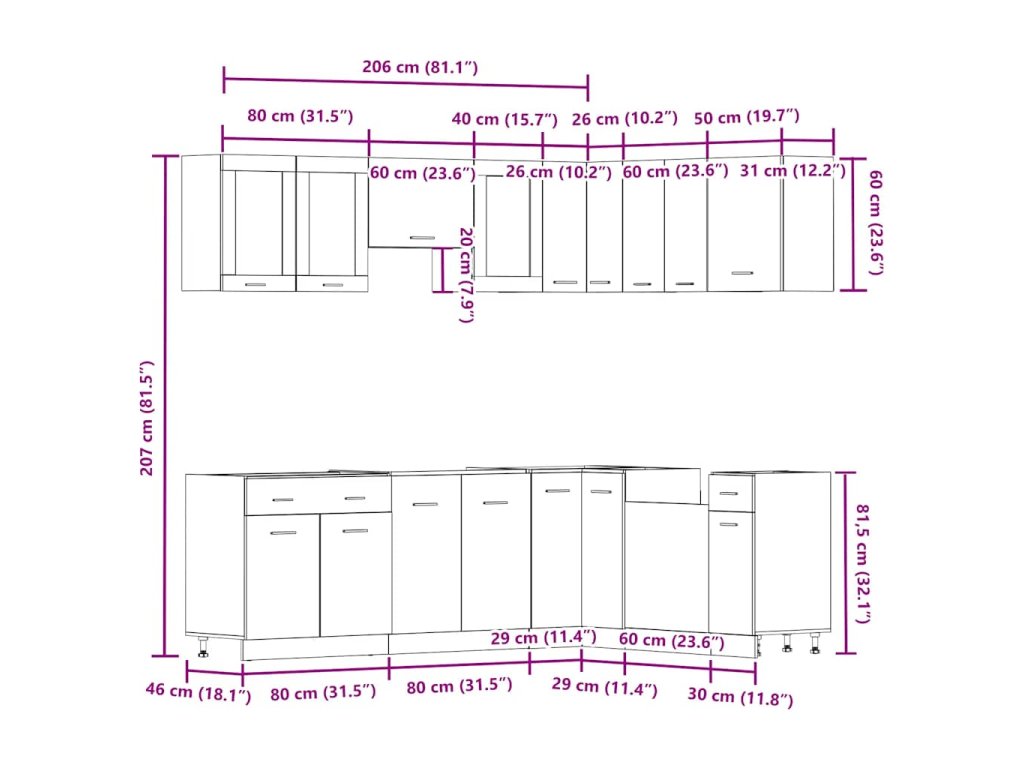 Tento 11dílný set kuchyňských skříněk s elegantním designem vám pomůže optimalizovat prostor v kuchyni a poskytne vám spoustu místa k uložení vašich osobních věcí!